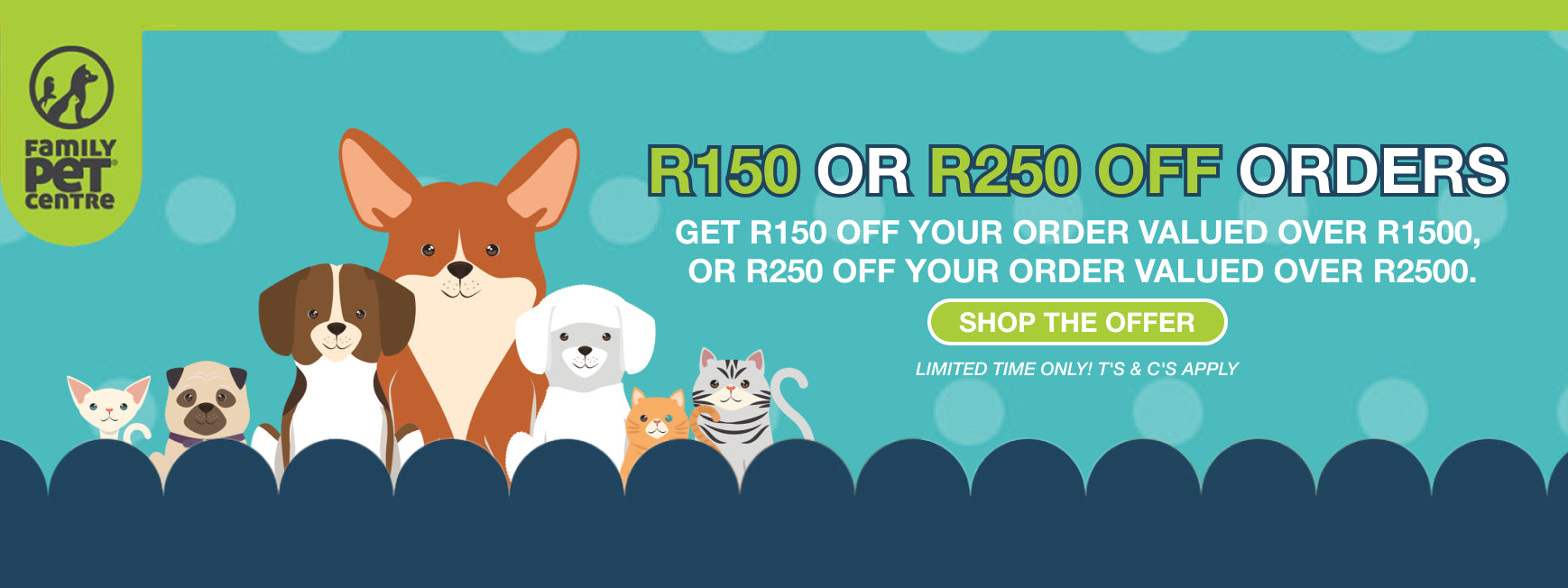 Shop over 100+ brands for the latest in Pet products for Dogs, Cats, Fish, Birds, Small Pets, Reptiles and Spiders. We offer Secure Shopping in the comfort of your home, Easy Payments with your Visa or Mastercard, Free Delivery on orders over R500, and Free Returns Within 7 days. Learn More